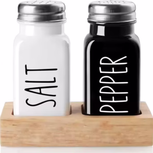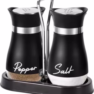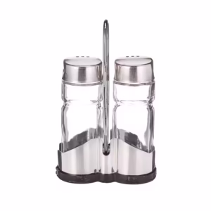 Mini 2 Pcs Glass Salt and Pepper Shakers Set Kitchen With Metal Holder