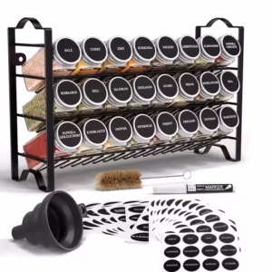 Glass spice jars offer several advantages over other materials such as plastic or metal. Firstly, glass is non-reactive, meaning it won’t interact with the spices and alter their flavor or aroma. Additionally, glass is a hygienic material that is easy to clean and doesn’t absorb odors. This ensures that your spices maintain their original quality and taste over time. Spice racks are important for efficient organization, easy visibility, space-saving, and decorative appeal. They provide a dedicated space for neatly arranging and categorizing spices, allowing quick access while saving counter or cabinet space. With various designs available, spice racks also add aesthetic charm to the kitchen.