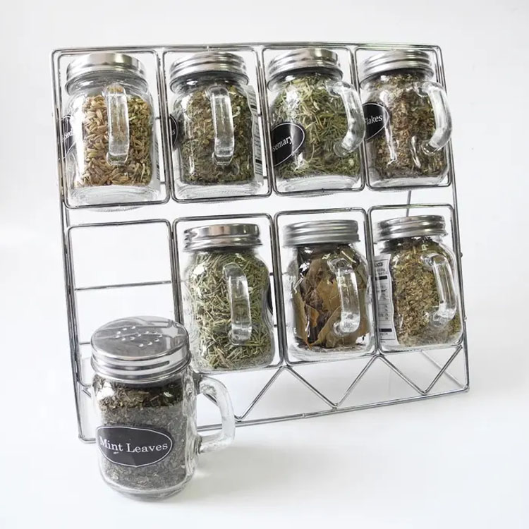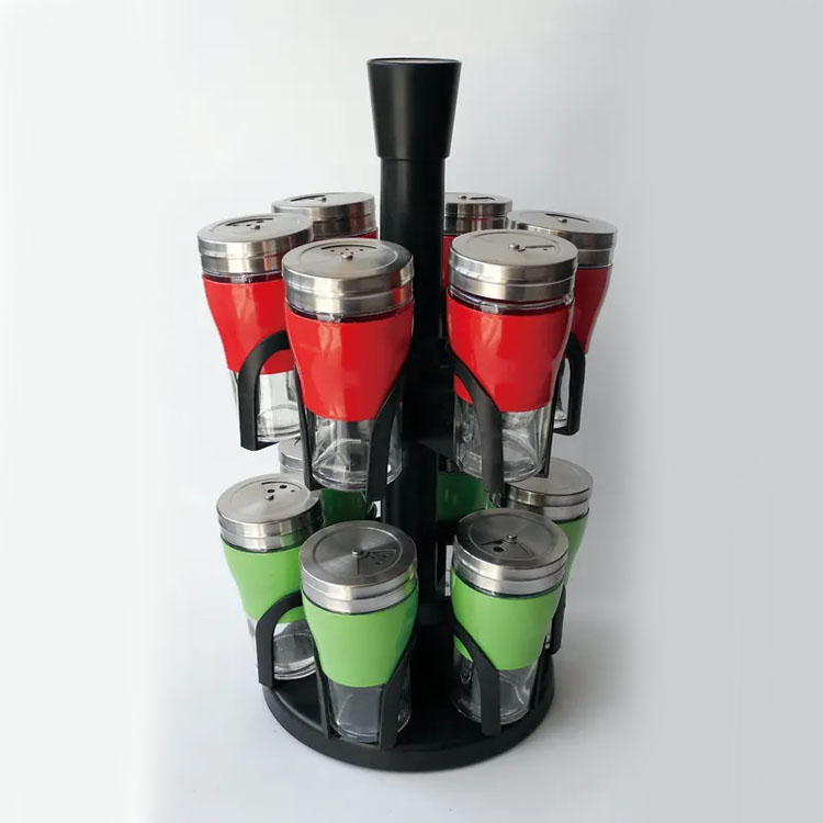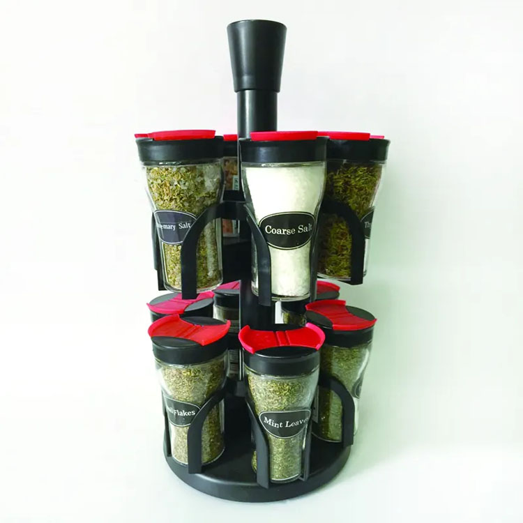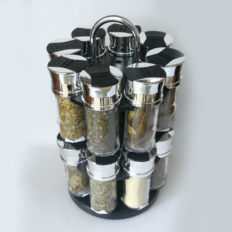 2021 Best Selling Wholesale Portable Glass Spice&Herb Jar Double Spinner Rack Set For Kitchen Storage