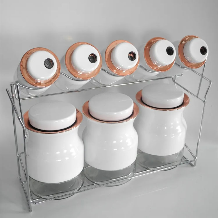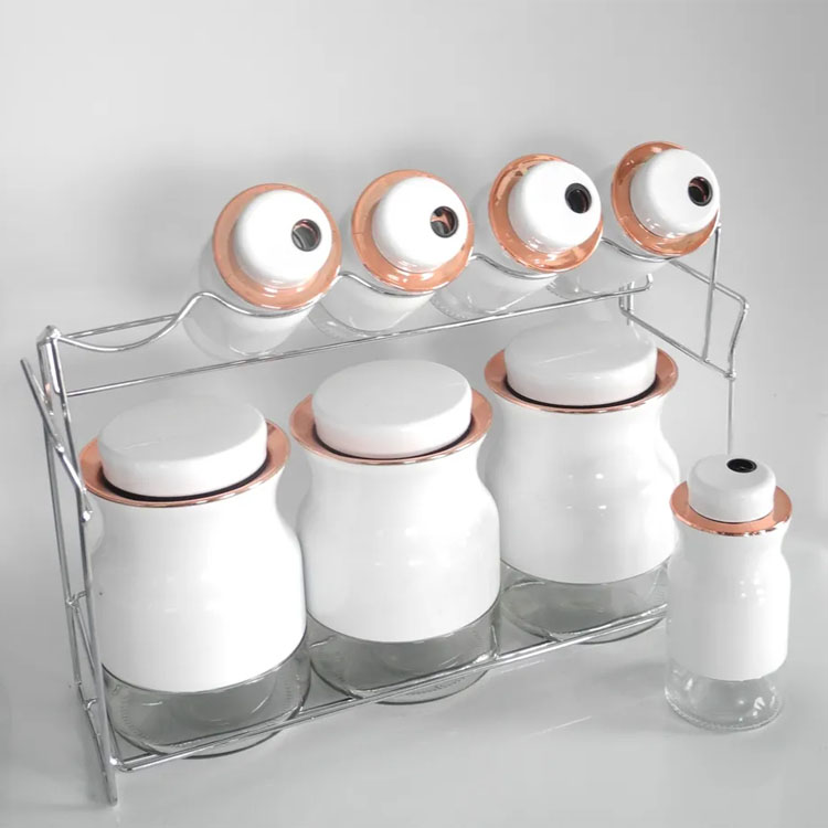 9 Piece Copper Color Stainless Steel And Glass Kitchen Counter Storage