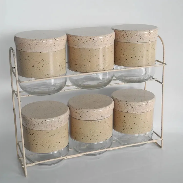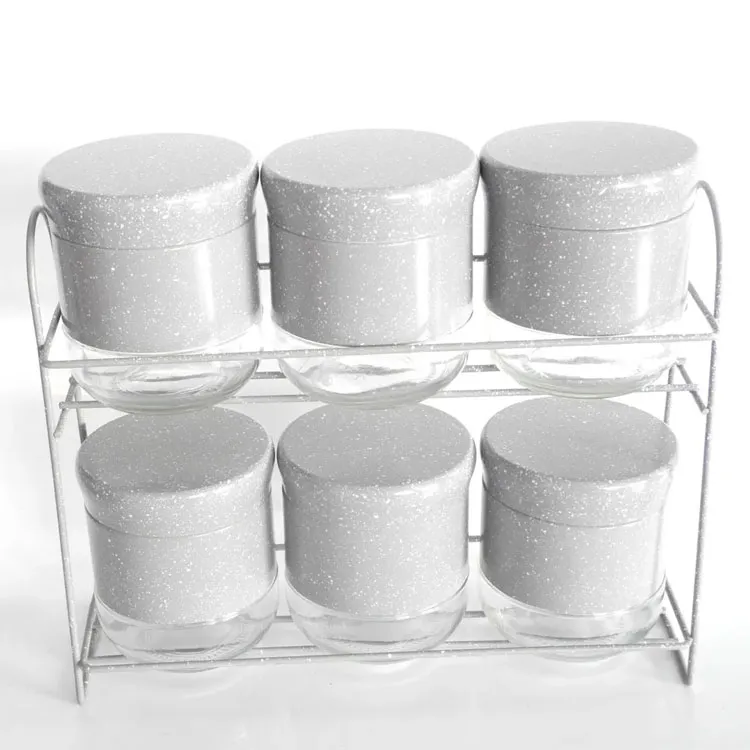 Supply Ability 100000 Piece/Pieces per Day 6pcs set Stainless steel cover glass spices jar Rack food storage