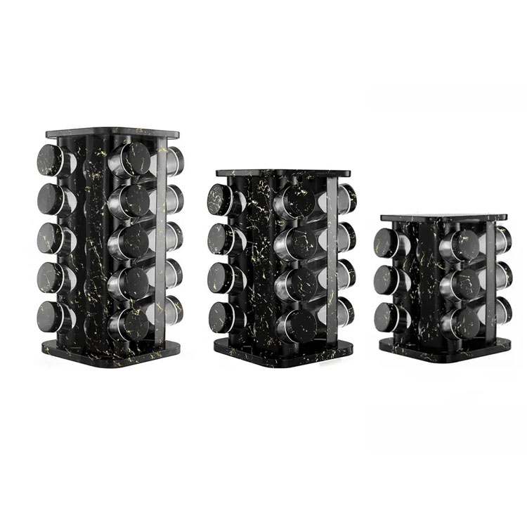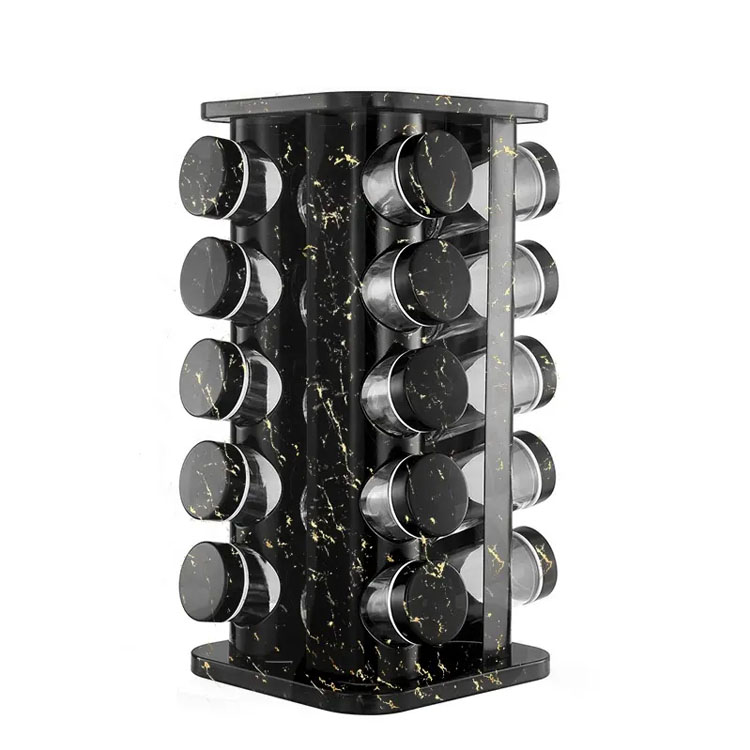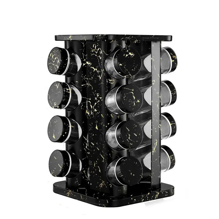 Spice Organizer Black Frosted Glass Bottle Jar with Decorative Lids